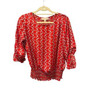 Michael Kors Red Chain Print Blouse Sz M wome blouse