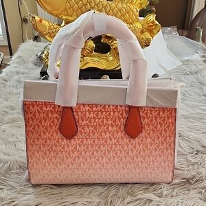 Michael Kors Red Clay Sheila Medium Ombré Signature Logo Satchel