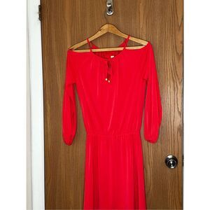 Michael Kors Red Cold Shoulder Midi Dress In XS