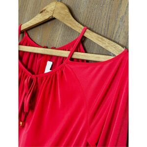 This beautiful Michael Kors Cold Shoulder dress is stylish and comfortable. The material is flowy and the fit is flattering. It's a perfect Valentines Day dress, or just a day in town with your girl friends. Get it now because this won't stay listed for long!