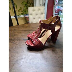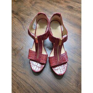 Michael Kors Red Croc Embossed T-Strap High Heel Sandals 9.5M