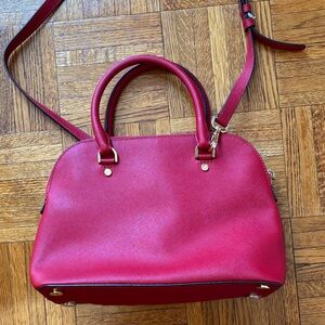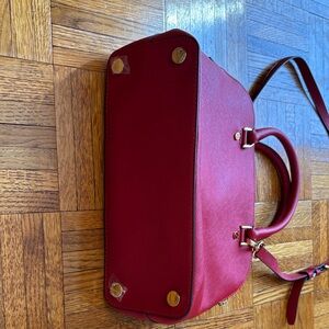 Chic Michael Kors crossbody bag in a striking red. Features elegant gold accents. Perfect for elevating any look.