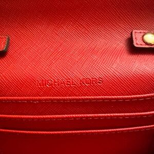 Michael Kors Red small purse with cross body strap Gold Hardware Envelope Shape.