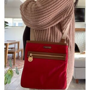 Michael Kors Red Kempton Crossbody Nylon Bag Purse