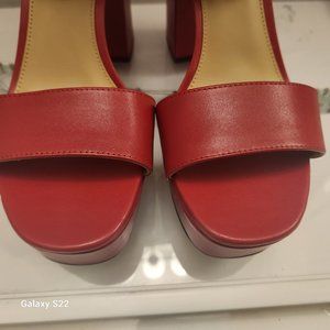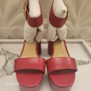 Michael Kors Red Leather Platform Block Heeled Sandals. NWT. Various