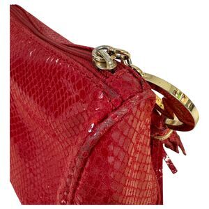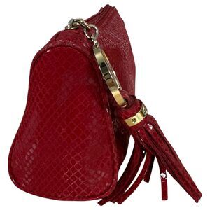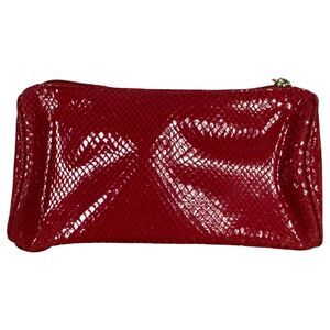 Michael Kors Red Leather Snake Skin Print Pouch Clutch Bag