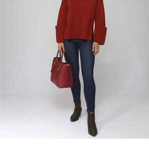 Elevate your style with the Michael Kors Red Leather Tote Bag. This elegant bag features a rich red color and luxurious leather finish. 14”Wby 11”H by6D 2 back slip pockets , 2 front slip pockets, 4 front slot cards lining 100Polyester , snap fastening