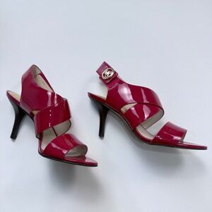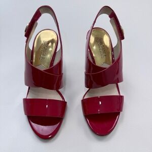 Michael Kors Red Patent Leather Open Toe Slingback Heels Strappy Sandals Size 6M
