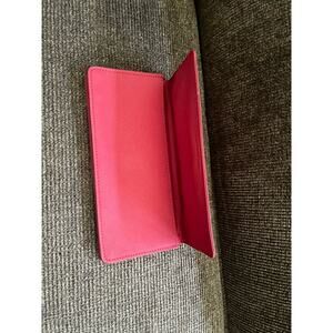 Red wallet with magnetic closure. Inside open section, perfect for dollar bills. Could also be used for receipts.