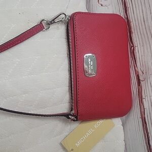 Chic and compact, this Michael Kors wristlet is perfect for on-the-go style. The vibrant red color adds a pop of elegance to any outfit.