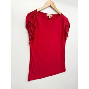 Michael Kors Red Shirt Ladies Size Small Ruched Pullover Short Sleeve Logo