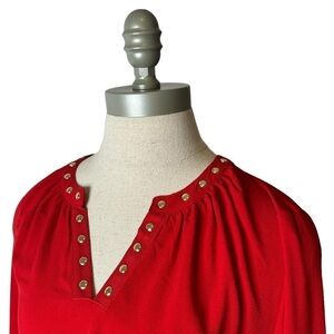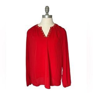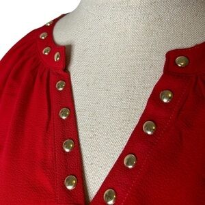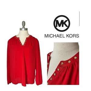 Michael Kors Red V-Neck Long Sleeve Gold Button Embellished Blouse Size Small