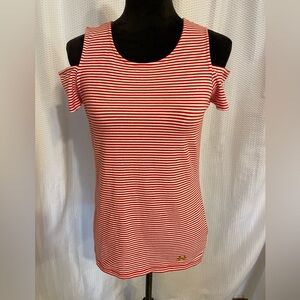 Michael Kors Red & White Striped Short Sleeve Blouse Size Small