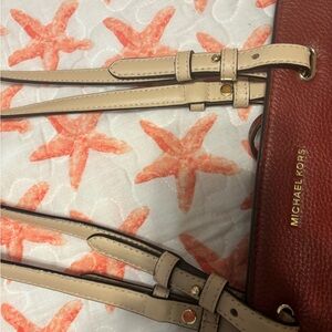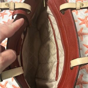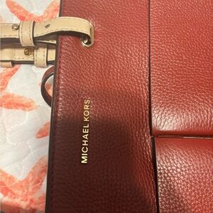 Michael Kors Red and Tan Shoulder Bag with Structured Design