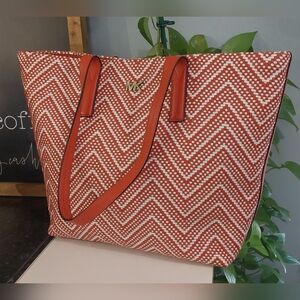 Chic and versatile tote with a striking chevron design. Perfect for daily use.