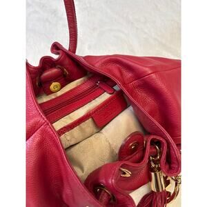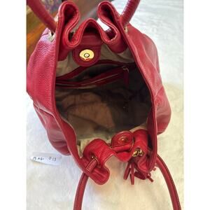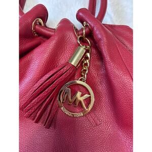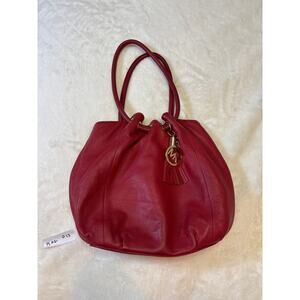 Michael Kors Red leather shoulder bag with gold tones.