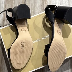 The Michael Kors Reed Block Heel Black Sandal is a fusion of comfort and contemporary style. The block heel ensures stability, while the logo-buckle detail adds a distinctive touch. Whether you're dressing up for a special occasion or elevating your casual ensemble, these sandals are a must-have for the modern wardrobe. Step confidently into the world of fashion with Michael Kors. Size 10
