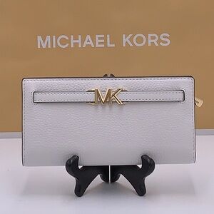 Michael Kors Reed Large Bifold Pebbled Leather Snap Wallet Card Case Optic White