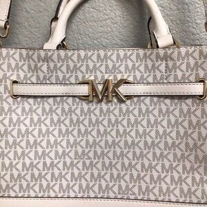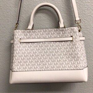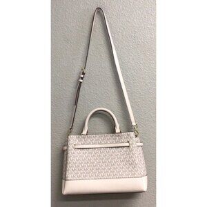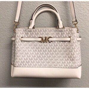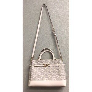 Michael Kors Reed Large Signature Belted Logo Satchel Crossbody Bag Cream