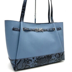 Michael Kors Reed Large Tote Bag Denim Snakeskin Blue