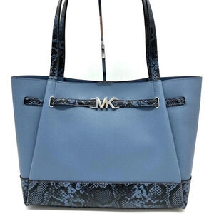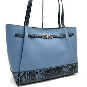 Michael Kors Reed Large Tote Bag Denim Snakeskin Blue