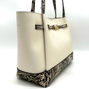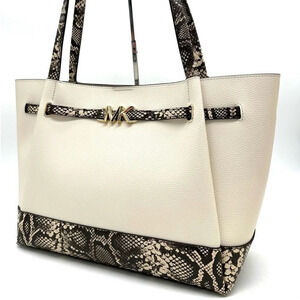 Michael Kors Reed Large Tote Bag Snakeskin Cream/Black