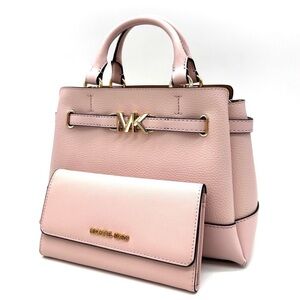 Michael Kors Reed Small Satchel Crossbody Bag & Large Trifold Wallet Light Pink