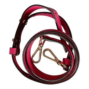 The Michael Kors Replacement Shoulder Strap in Fuchsia Pink Leather features a solid color design with logo accents. This stylish accessory is adjustable and detachable, making it versatile for various outfits. The set includes 2 gold bag charms for added flair. The high-quality leather material ensures durability, while the 43" length with clip-ons provides a convenient fit. Perfect for women who love to personalize their handbags with a touch of luxury and sophistication from a trusted brand like Michael Kors. Length: up to 43" with clip-ons, Width: 3/4"