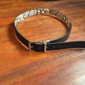 Michael Kors reversible black & snake print leather belt. Silver hardware. Good condition. Approximately size 4-6.