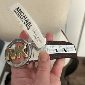 One side is a nice medium brown color, the other side is black and gray MK monogram