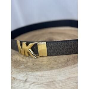 Description: This versatile Michael Kors Reversible Belt combines style and functionality with a chic design that features a brown monogram on one side and a solid black on the other. Finished with a striking gold MK logo buckle, this belt is perfect for pairing with both casual and formal outfits.