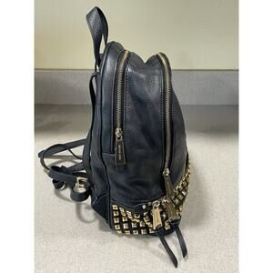 Michael Kors Rhea Black Leather Backpack with Studded Gold Detail