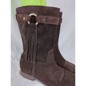 Michael Kors Rhea Brown Suede Mid Calf Boots Fringe Pull On Womens size 7.5 M
