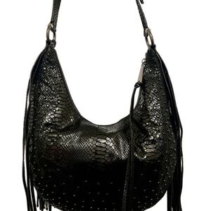 Michael Kors Rhea Crystal Black MD Slouchy Hobo Shoulder Patent Python Bag