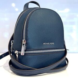 Michael Kors Rhea Extra-Small Printed Signature Logo Backpack Navy Blue