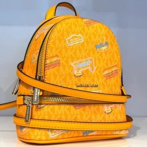 Michael Kors Rhea Extra-Small Printed Signature Logo Backpack Pop Orange Multi