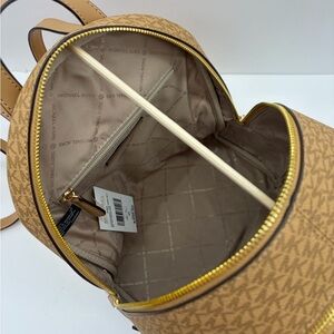 Chic Michael Kors backpack with a bold orange front and tan accents. Ideal for daily wear.
