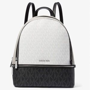 Michael Kors Rhea Medium Color-Block Signature Logo Backpack Optic White Multi