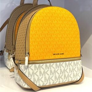Michael Kors Rhea Medium Color-Block Signature Logo Backpack Pop Orange Multi