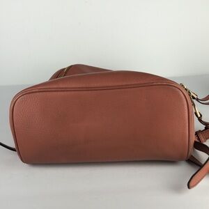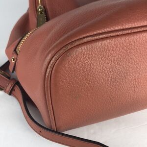 This cute backpack is perfect for everyday use! It has adjustable straps, 3 separate zipper compartments, gold colored hardware, a top handle, tassels, interior pockets and it’s made of pebble leather. It has a few scuffs, wrinkles and the interior has a few spots. Smoke free home.