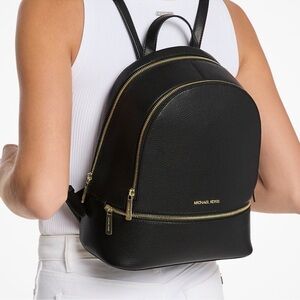 Michael Kors Rhea Medium Pebbled Leather Backpack Black