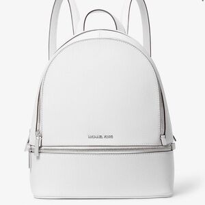 Michael Kors Rhea Medium Pebbled Leather Backpack Optic White