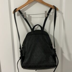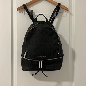 Michael Kors Rhea Medium Signature Backpack Handbag Black with Silver Hardware