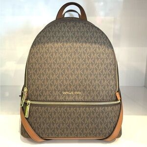 Michael Kors Rhea Medium Signature Logo Backpack Brown Signature