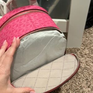 Michael Kors Rhea Medium Zip Backpack Dragonfruit Pink NWT