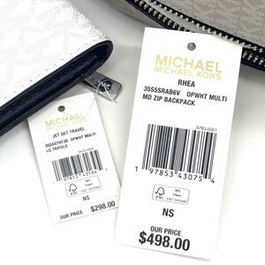 Michael Kors Rhea Medium Zip Backpack & Large Trifold Wallet Optic White Multi