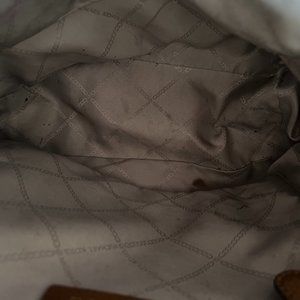 Used, fair condition, has a few exterior flaws (corners of bag, top handle, etc) and interior needs cleaning from marker and pen stains (see photos). Bottom of bag is in good condition.
