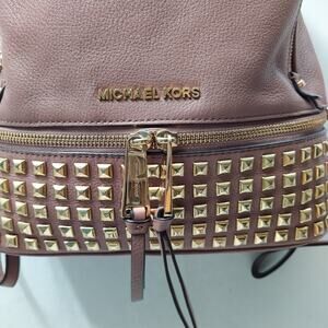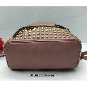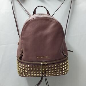 Michael Kors Rhea Pink Pebbled Leather Studded Top Handle Zipper Backpack