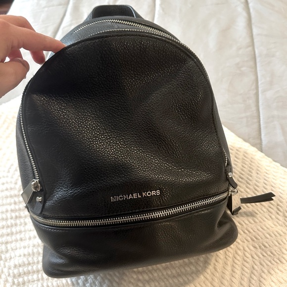 Michael Kors Rhea medium backpack. Black with silver hardware. No damage to leather or interior. Smoke free home.