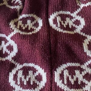 Chic knit beanie with Michael KORS Signature MK Allover print in burgundy with white pattern. Ideal for winter wear. One Size New With tags